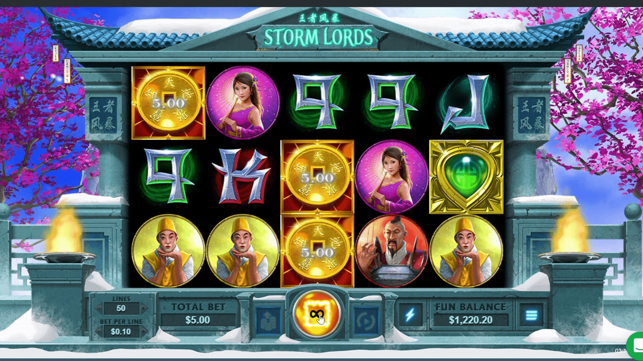 The Storm Lords game depicts Chinese warriors and gives you a glimpse into ancient kingdoms. This is a 5 by 3 reel slot game with 50 variable paylines and low to medium volatility. It also includes features such as free games and re-spins.