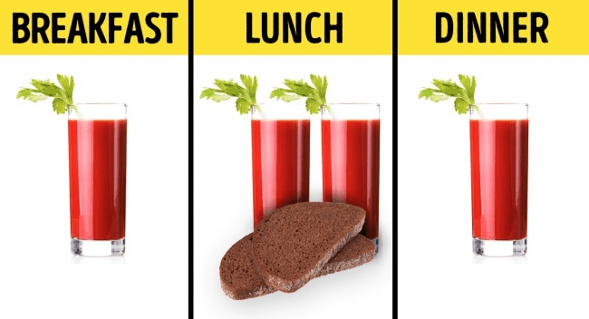 9) Consume tomato juice once during breakfast and dinner whereas two glass during lunch.