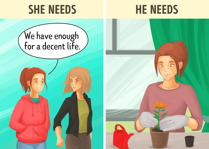 4. Every woman needs to have enough money, and a man needs his house to be cosy.