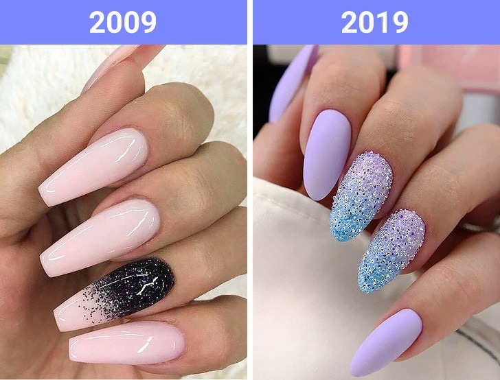 The fashion of nails is continually going on change. Coffin shaped nails were in trend in the year 2009. Nowadays, short almond nails are in the pattern.