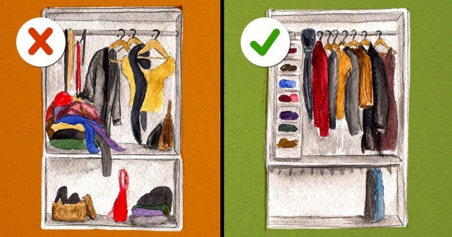 Your organization can be of any type may be vertical or may be horizontal. You should place the items which you want to use first above the shelves. This can help you more and hence you need to look at all the shelves. Your shoes can also be stored down the shelves. Above you can store clothes and down you can save shoes.
