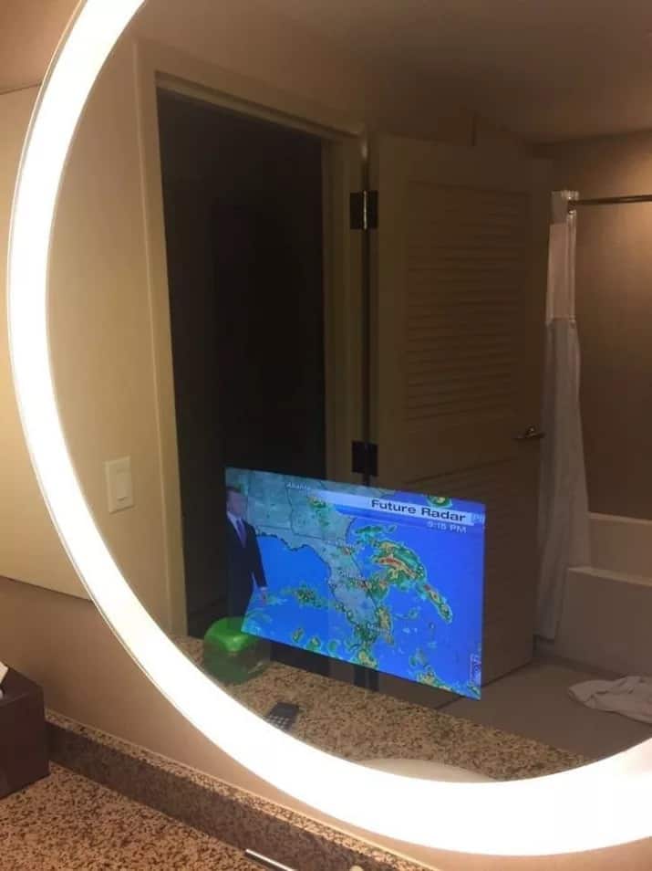 9. TV freak like me? Don’t miss anything even while you are getting ready. The hotel room mirror that comes with a built-in TV screen.