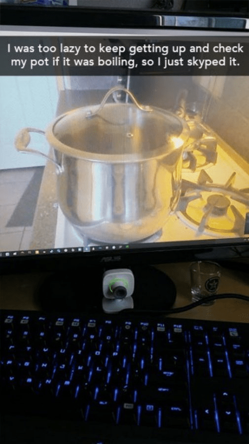 Look at the picture the person found it difficult to check if the water had boiled or not and so he put the webcam in the kitchen with the Skype connection to my connection. If you have to give an award to the vaguest chefs, then he must be there in the top three without any doubt.