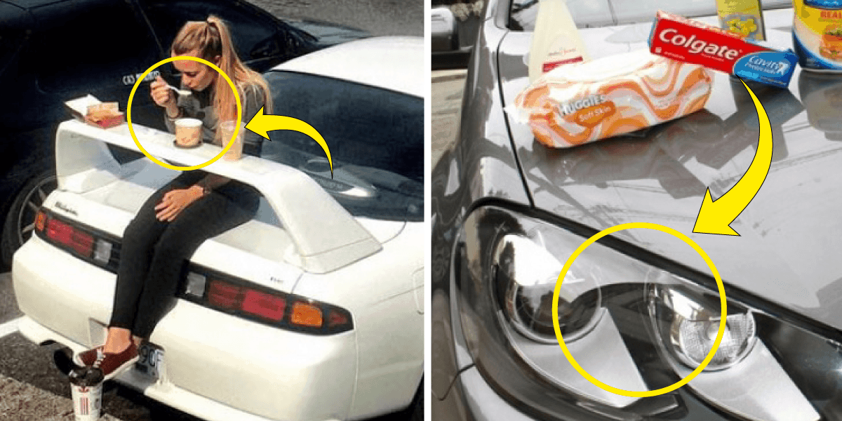 - Car spoilers can be used as make-shift tables for eating lunches!