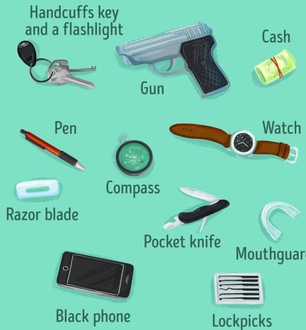 All the agents carry one bag in which they place all the things to protect themselves. Say for example a mouthguard is right to save your teeth from a collision. You can use a black phone because it hardly comes at the notice of someone. And a pocket knife is the best tool to save yourself.