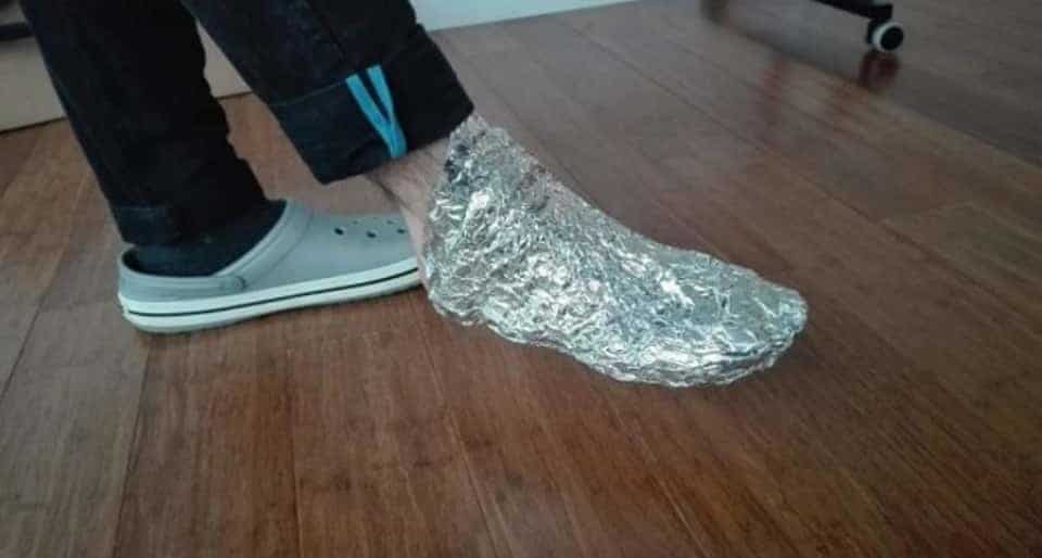 To get rid of the sciatic pain, wrap your feet in aluminium foil. If the problem persists, consult a doctor.