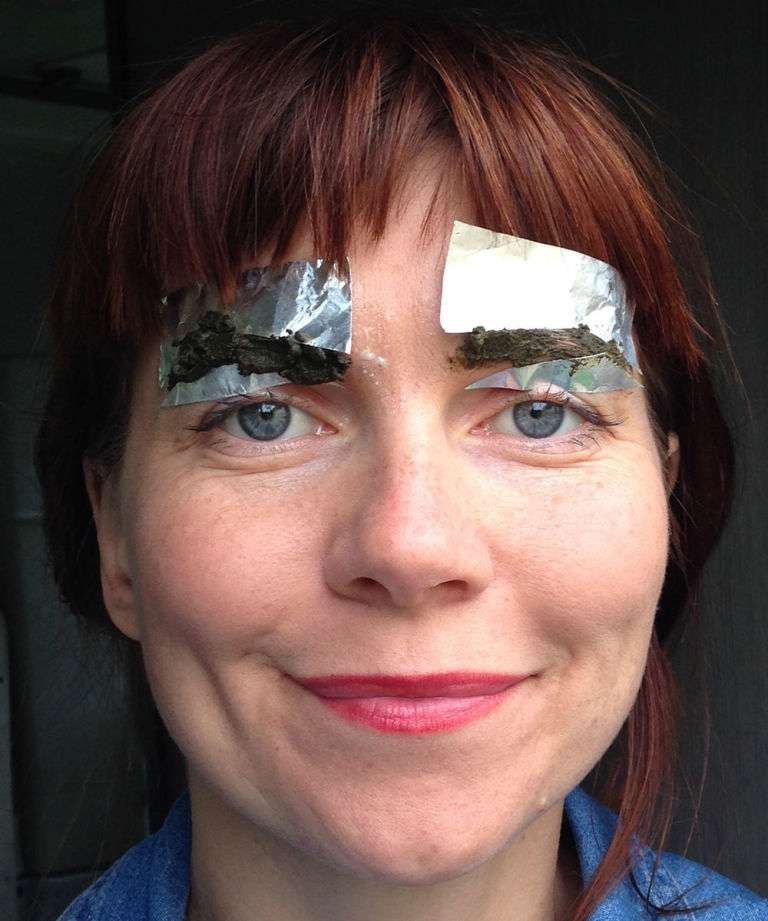 Remove the pieces of foil and rinse your eyebrows with cold water. Apply some shea butter after you’re done.