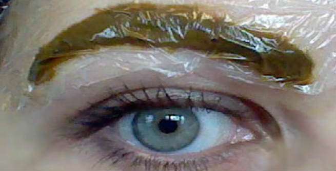 Apply the henna paste on your brows and cover the area with foil. Gently place two pieces of foil on the upper and inner side of brows. Make sure to stick them properly without any air bubble.