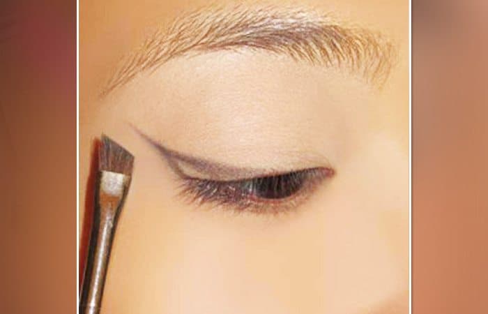 Now moving on to the second step, After you’re done with fixing the imaginary line, take some eyeshadow on your angled brush and draw a soft line from the external corner of your lash line and expand it towards the tip of your eyebrow for a more sensational look. Make sure to put less weight as you move towards the tip.