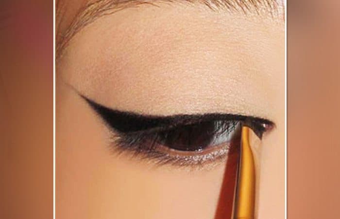 After you’re done with the basic outline, It’s now time to darken your eyeliner. Use some gel eyeliner on your brush and work on darkening the eyeliner. Remember to keep your look softer as you move towards the tip of your eyeliner. For this, hold your brush loosely as you reach that area.