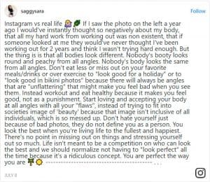 She says, “The beauty industry strives off our insecurities, and only shows so few body types, please don’t let this make you hate yourself”