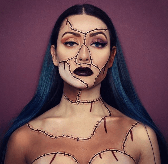 To light up her neck, she chose a light blue colour. If you even have the same idea, then you can also choose a bright blue colour for the eyes.