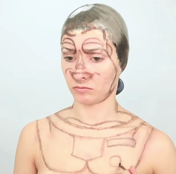 She has also painted her shoulders with the same light blue colour. It’s evident that to look even; you need to colour the remaining part of the body with the same colour.