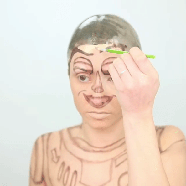 After the headpiece, choose your favourite colour to paint your skin. Moreover, start brushing your skin with your favourite colour.