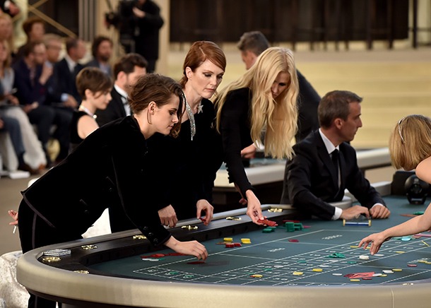 His 2015 Paris Show was all about casino couture, which came with all the usual features of a fully functioning casino. You had a room offering craps, poker, and roulette in the center of the catwalk, whilst on the outer sides of the room, you had a selection of fully working slot machines. This was not your typical fashion show and Lagerfeld made sure of it.