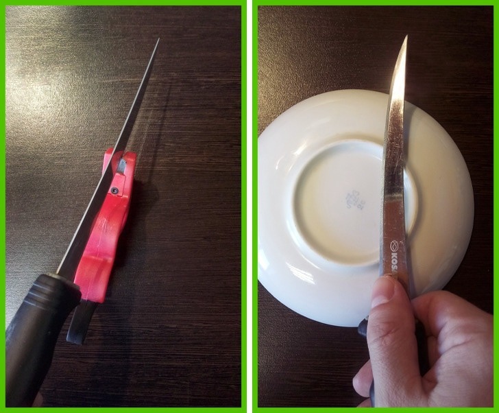 Well, you can guess the sharpness of the knife by checking it on your hands. But you can turn its blade sharp after you rub it. The rubbing process is against the bezel which would be at the bottom of the simple porcelain plate.
