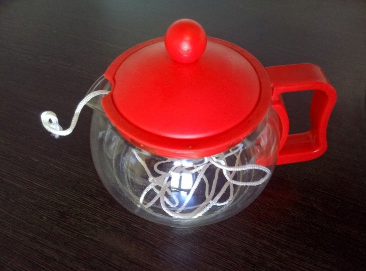 You can put the small teapot in use which is no more beneficial for you. It is right for you. You can bring in the application by placing the rope inside. It would even keep the string to tangle and thus will help you to keep it at hand.