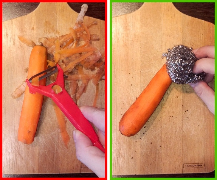 It is very easy to peel off the carrots with the help of the metal scrub. A metal scrub can speedily peel off the carrots and also leaves very less waste.