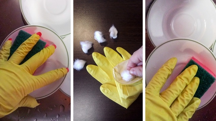 We always want that our manicure should not get spoiled and we also want that our rubber gloves should not get torn out. For this, you need to protect your nails. You need to put cotton balls in your each rubber gloves finger and then start the cleaning process. The cotton will not let your nails to come out through the rubber gloves.