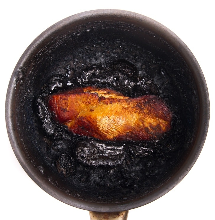 How can you deal with the burned pan?