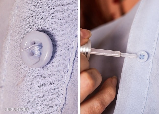 The little threads that come out from the button are so annoying. It also increases the risk of breakage of a button. You can fix the threads by using nail polish. Fix all the threads inside the button with hand and use a transparent nail polish outside to adjust the threads.