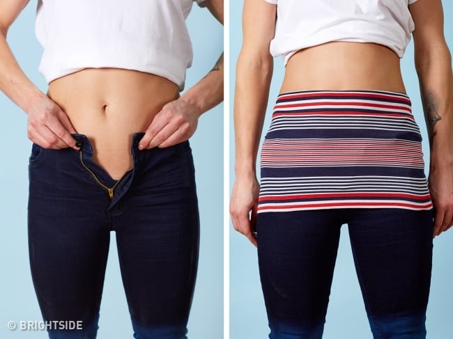When our jeans get tighter, and we become unable to button it up then here we will give you a trick by using a tank top. Wear your jeans and then wear a tank top over your jeans and then fold them inside.
