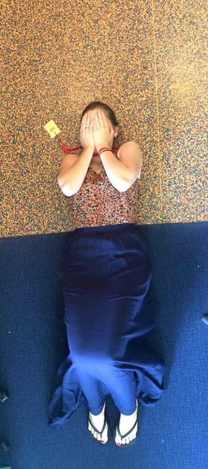 7. This employee wants to blend with the floor so that her boss doesn’t find her.