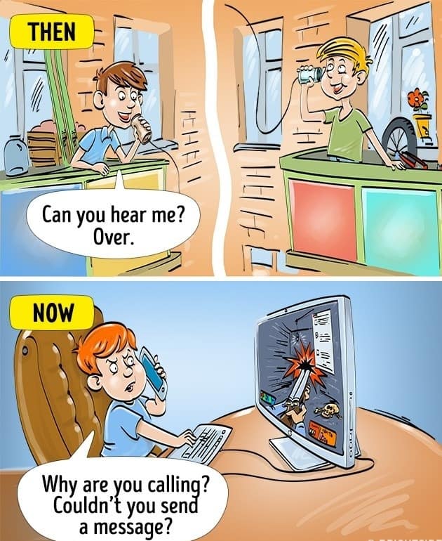 Before this, there were no proper telephones, and the people use d to be happy when they were connecting with each other, but now even if we call someone, they are so busy that they shout why did we call them while they were playing.