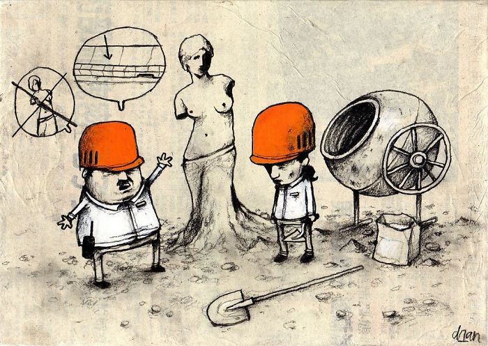Comics show wold’s actual condition-We people are living in the most advanced century of the era and going towards the regular form of modernization. We have become too much modern and advanced and if we look back towards the ancient solidarity of society, we just feel “oh! Look at these people; they are so savage and uncivilized”. Basically, the human has been a social animal for centuries due to its interactive nature and that is why he is said as a social animal but the point is that is it true? Okay, we just can’t deny for that so we can just say that the meaning of social phenomena is changed where the mechanical solidarity seems savage and uncivilized to the modern people. Human is still social but the form of social context is something else from the ancient era. Those people used to truly come in the joys and sorrows. They used to guide their mates and the mates used to be happy about that. People do come today too but the form is changed as they just digitally come along the others. All I want to say is that we are getting the world of inventions along with the world of dangers and anxiety. We are going to show you some unique piece of modern world’s portraits done by a young artist, Dran. He is also known as the French Banksy and he has demonstrated towards the actual position of today’s world. Things are getting higher and advanced but they are not giving positive feedback rather the negative traditions. Dran has just illustrated the things in a very thoughtful manner as one is compelled to agree what’s going on actually. Here are 24 awesome pieces of artwork by Dran, just look at them and tell whether you are yes or no.
