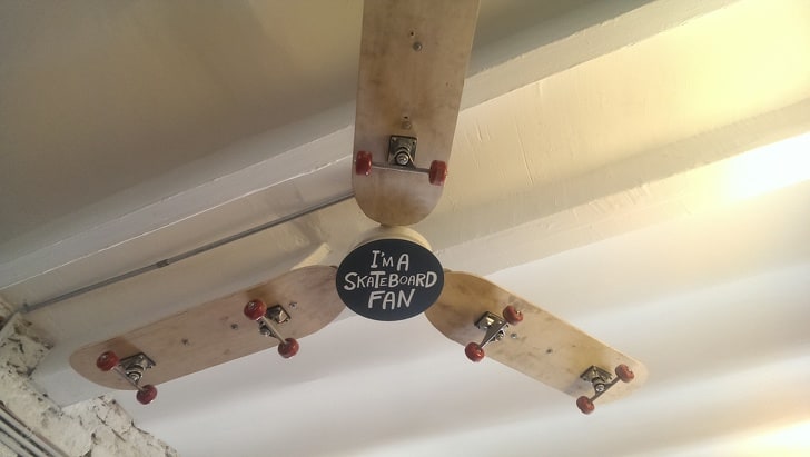 With the passing surfboard now we are introducing you with the skateboard. The skateboard fan seems like the man has bought it because he might be a great fan of it as it is written on the fan that he is the big fan of the skateboard.