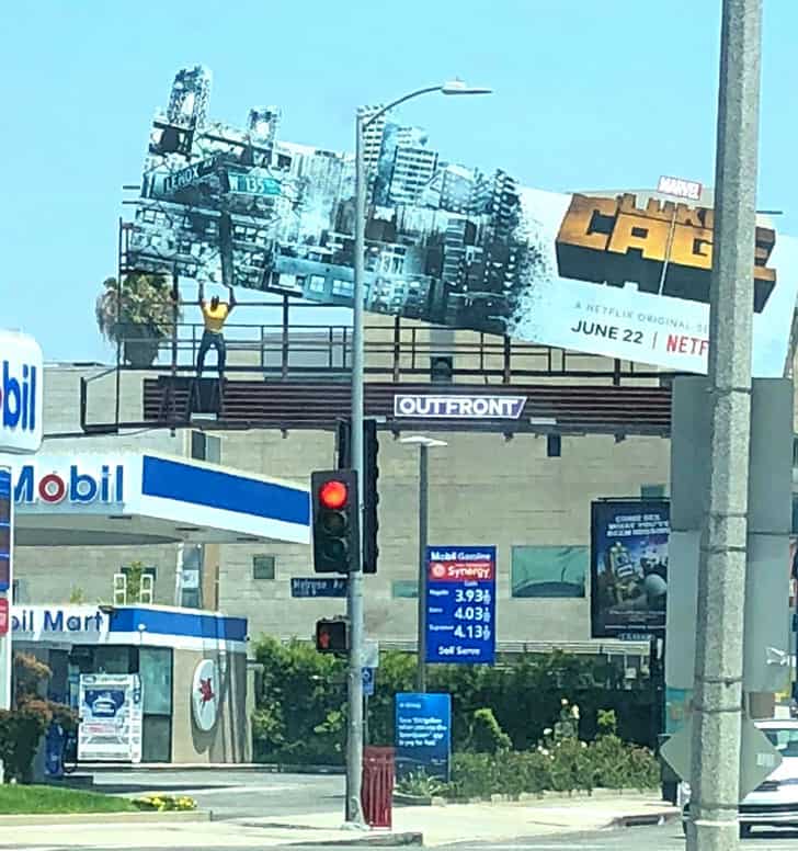 It is the Luke Cage billboard that is being held in the Luke Cage. Well, it is okay to see the creative mind of the designer. Luke Cage here means the superheroes.