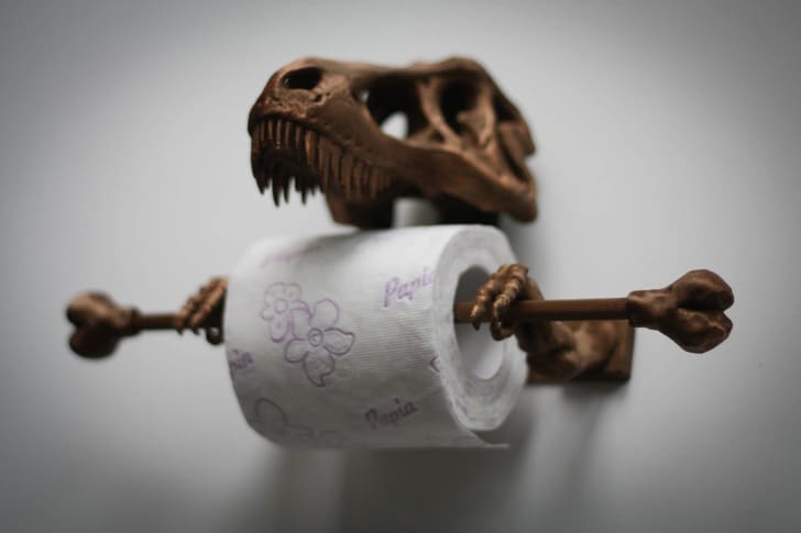 No need to get afraid of this because it is a toilet paper holder. But we would like to think if someone would want to have such an exotic paper holder in their washrooms as it is a bit scary.