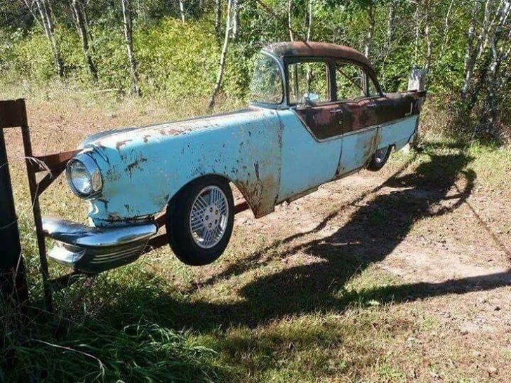 The car in the below picture is of the real, but the designer has the full mind to set it as the gate of the jungle or some garden. You can use as there might be some spare parts of the car at your place.