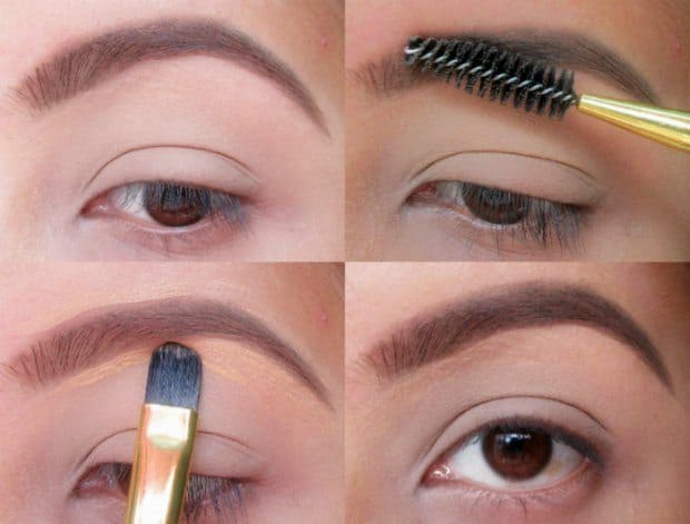 After you’re done with outlining your brows, it is time to fill them in. Fill your brows in with a brown eyebrow powder.Make sure to blend it very well with the help of a spoolie. After finishing the blending part, apply some concealer under your brow line to hide any mistakes and also above your brows to highlight them a bit more; lastly, you need to set that area with a compact.