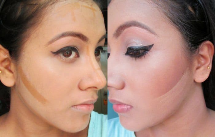 After that, again apply the highlighting concealer just under your contour to make it more prominent and clear. If you see any visibly harsh lines, use a contouring powder to do away with those lines and make your look softer and more natural. You can even skip your blush and directly apply a bronzer on your cheeks.