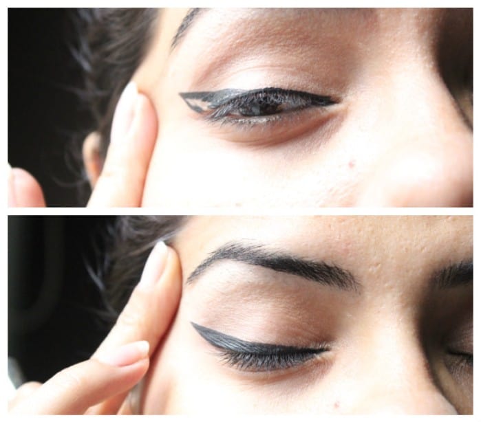 While applying the liner on the end side of the eyes, do not dip the brush or liner again in the pot. It can enlarge the chances of odd shape more.