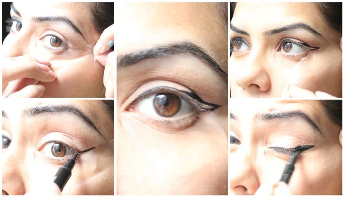 If you have shaky hands while applying the eyeliner and you are unable to shape a cat eye look, a sticky will help you for the best look ever. All you are supposed to do is to stick the tape making a 60-degree angle from the eyebrows. Afterward, draw a line like that angle and lead it towards the inside lashes.
