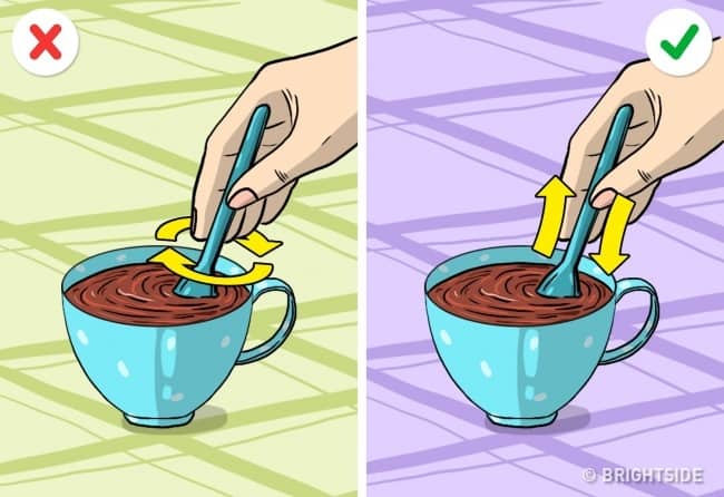 You become so careful about the fact that the spoon does not hit the walls of the cup that you do not even realise that you are making a mistake. The next time you do not want to go in circles with your spoon rather work it back and forth. This process is much quieter than the one you use and will also help dissolve the sugar faster.