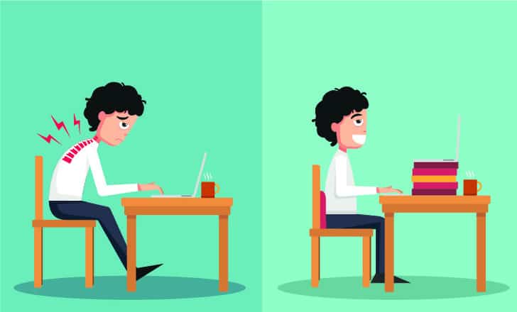 Sit straight while doing your work and always give support to your back with the help of the chair. If you want to work in front of the laptop, then you need to adjust the height accordingly.