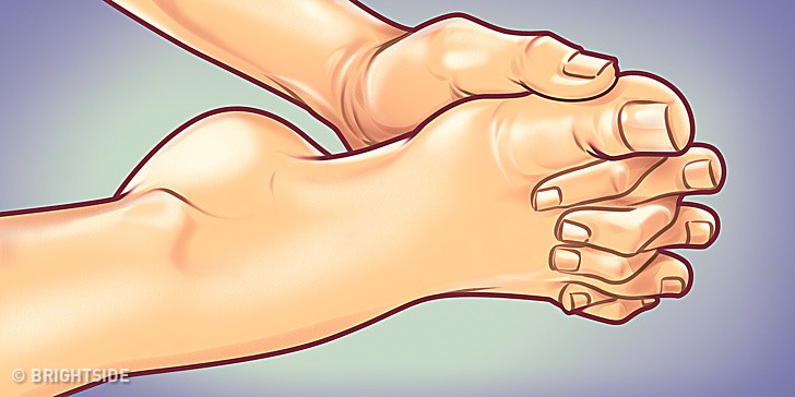 You need to cross the right leg over your left thigh by sitting on the chair comfortably. Interlace the toes of right feet with that of fingers of left hand. Stretch the toes and fingers and hold them for ten seconds.