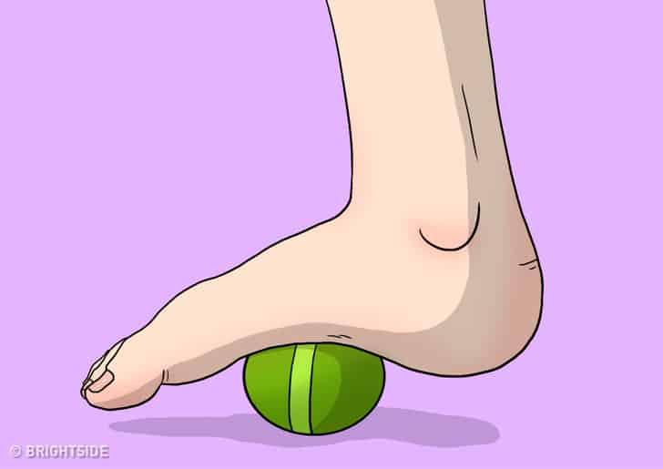 Place your second toe of the feet on the tennis ball and roll it to make you feel relaxed for at least three minutes.