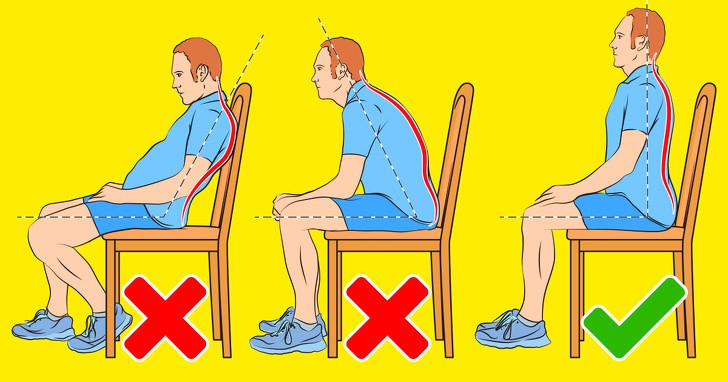 Be neutral while sitting. You should always sit with your back and neck straight in the same line. It will reduce the stress on your spine.