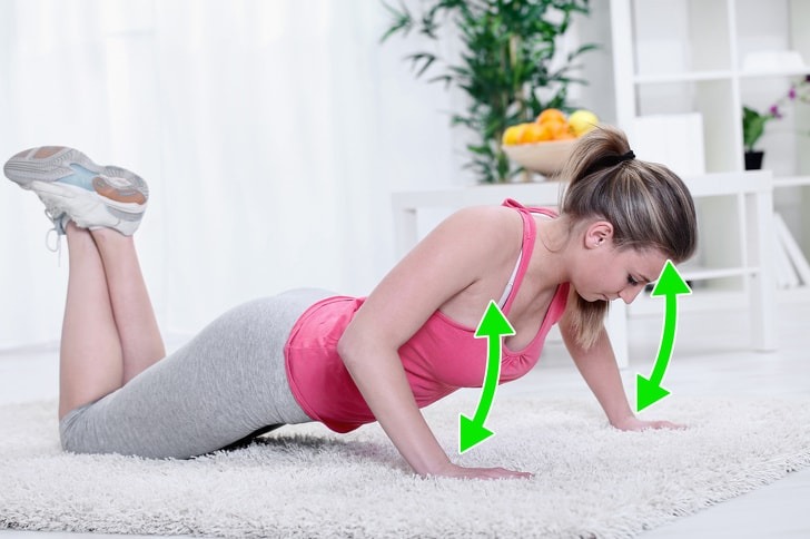 If you keep your arms apart by shoulder width, then this exercise will work on your back and shoulders. When you place your hands close together and doing narrower pushups, then this exercise is working on your triceps.