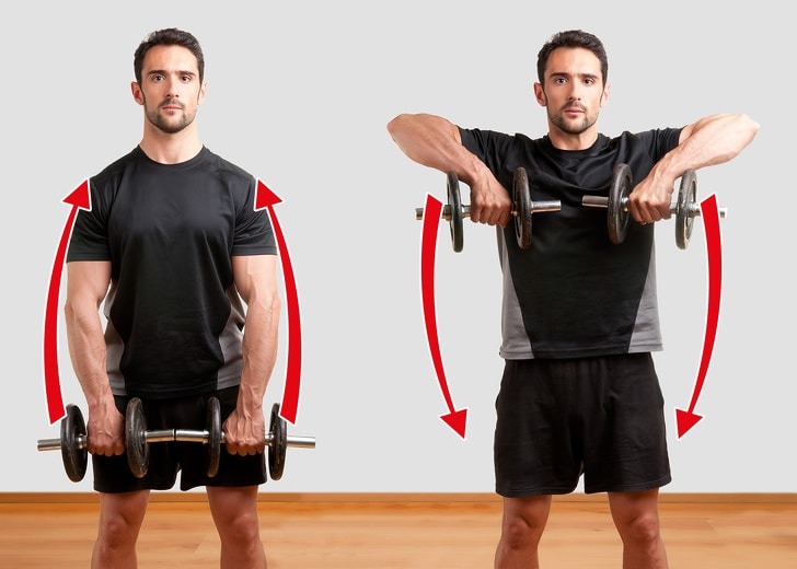- In each hand, hold one dumbbell, and you have to place your hands at the chest level.