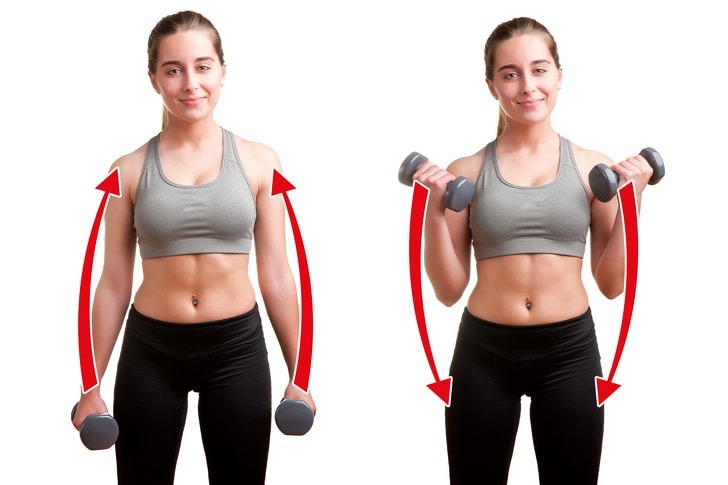 - Bring the dumbbells near your chest bring your elbows in line up with shoulders.