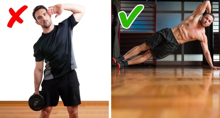 You waste your time and energy by doing this exercise in the gym. This exercise does not help you to lose the unwanted fat on your sides. The practice does not work because you can not lose fats in the specific spots of your body; rather you work for the whole body. You bend your spine in this exercise in the sideways. The sideways movement of the spine in a very unnatural movement.