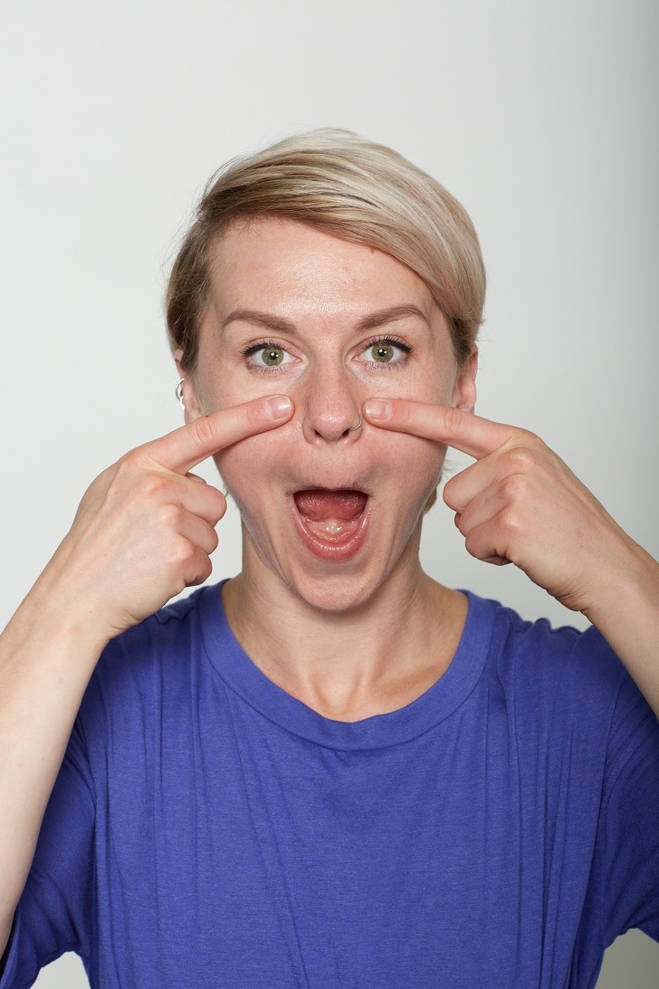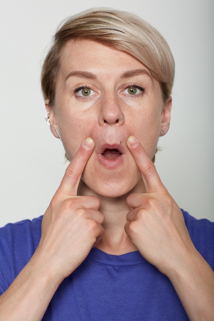 This exercise helps in smoothening the wrinkles from your nose to the mouth corners.