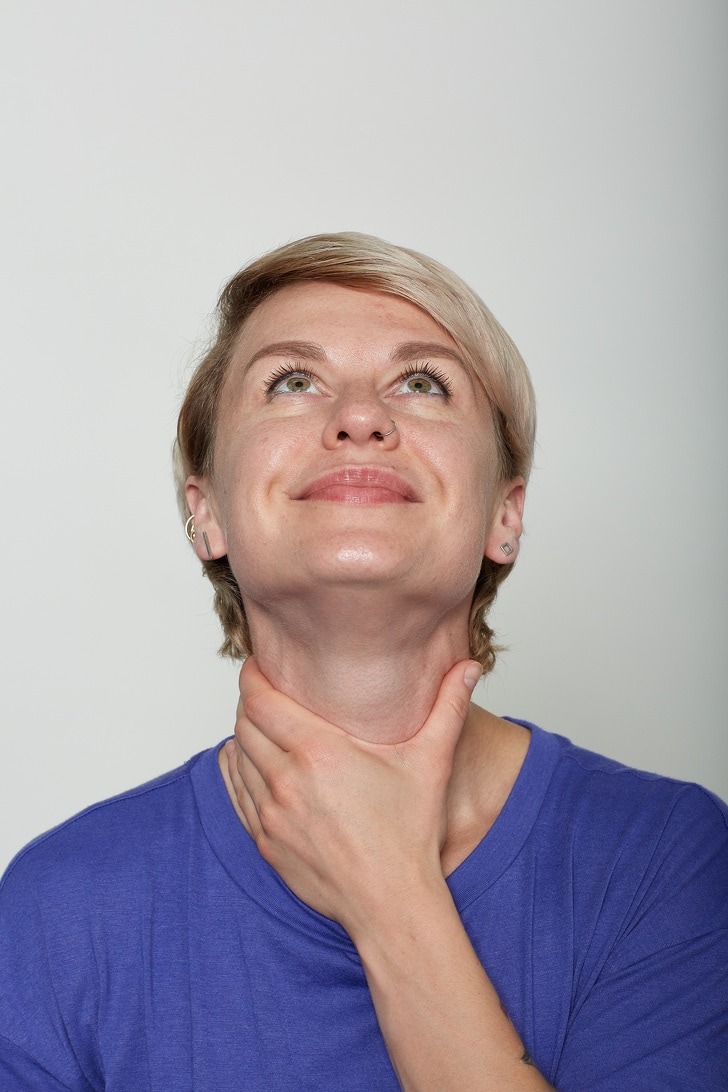 This exercise helps to strengthen the jawline and neck which helps to reduce your double chin.