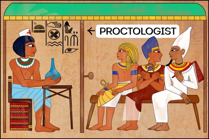 Egyptians were good at the medicinal purpose. They were much good in the issues of dentists, surgeons, and ophthalmologists. But among them, all proctologists were on the top rank of the doctors. The wealthy people used to spend most of their time eating and drinking. They got addicted to enemas regularly. Some of the proctologists were among the dentists, and hence they always used to take care of the Pharaoh’s digestive system from both sides.