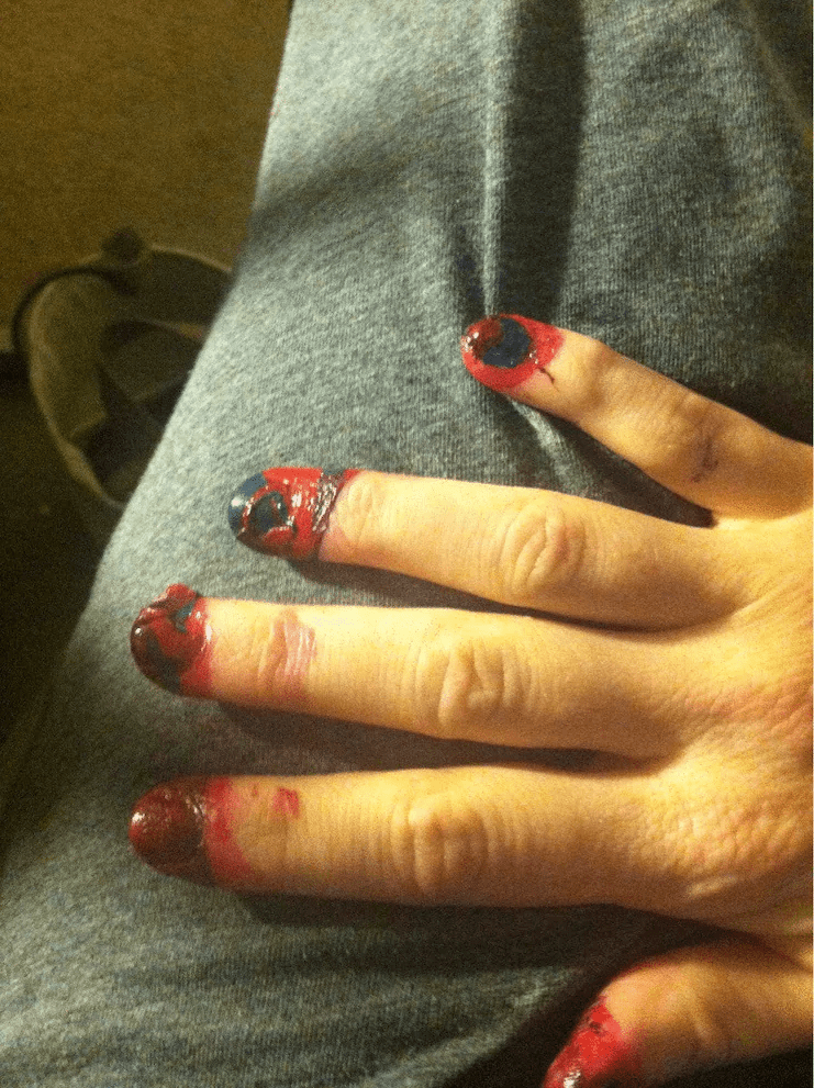 The reality is something else, but our expectations are different and hence we always say that expectations always hurt. Ok, now let us take an example of the woman who wanted to draw the pattern of her country flag on her hand. But later she ends up in messing up her nails. Here is the result which the girl produced when she was much eager to know her drawing technique.
